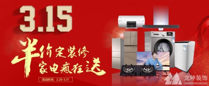 龍坤裝飾3.15集結號,半價定裝修,家電瘋狂送?。?!