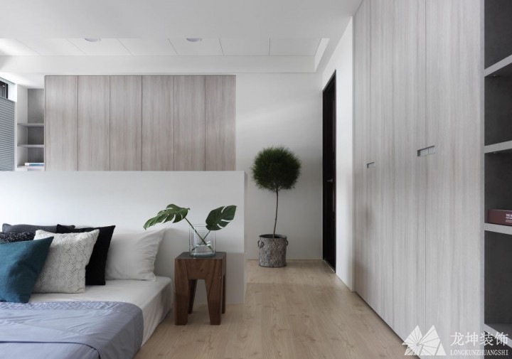 只要做衣柜的這面墻不是承重墻,就可以改成嵌入式的設計,有的屋主也會選擇用衣柜來代替墻,這樣也更省空間。