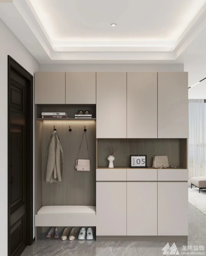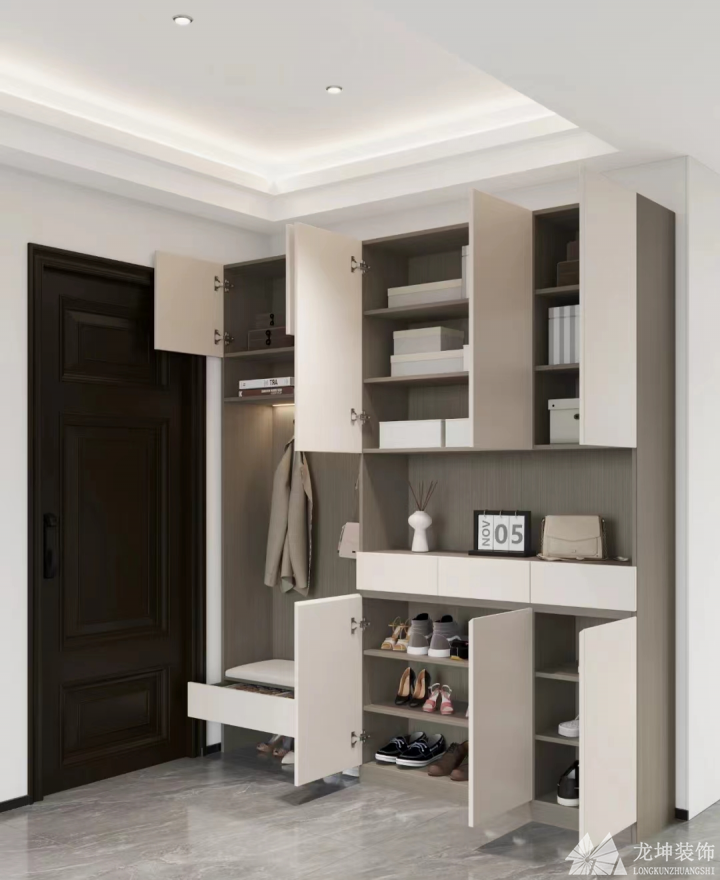 鞋柜,一般會(huì)設(shè)計(jì)在入戶玄關(guān)。玄關(guān)作為入戶的第一位置,重要性可想而知。鞋柜既要具備實(shí)用功能,又要具備美觀功能。但是很多客戶都反映自家鞋柜不是很好用,放不下鞋子啦,尺寸設(shè)計(jì)不合理啦,沒(méi)有換鞋凳啦,高度不合適啦,等等等等。那么如何設(shè)計(jì)一款真正實(shí)用的鞋柜呢,下面龍坤裝飾小編一起來(lái)看看吧。