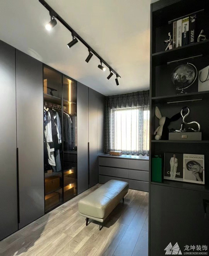 擁有一個獨立的衣帽間,是很多女人的夢想,不僅可以將自己的衣服、包包、鞋子、帽子等物品整齊地存放在里面,而且也將成為家居空間中一處獨特的風景線,起到了很好的裝飾效果。但是要在家里裝修出一個獨立的衣帽間,有些地方需要注意,尤其是整體空間的布局。龍坤裝飾小編今天為大家詳細介紹一下衣帽間裝修的一些注意要點以及空間布局的講究。