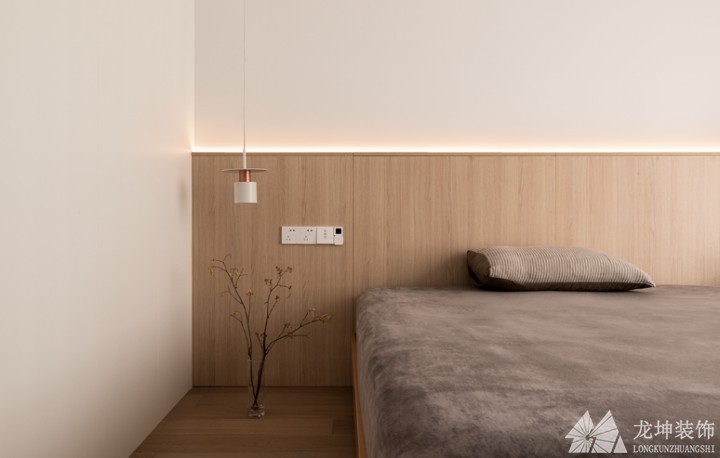 傳統(tǒng)床頭柜占用的空間比較大,缺少個(gè)性化與時(shí)尚感,如今,年輕人在傳統(tǒng)床頭柜的基礎(chǔ)上做減法,將床頭柜懸掛在墻面上,與背景墻一體化定制,整齊劃一,高級(jí)感滿滿。