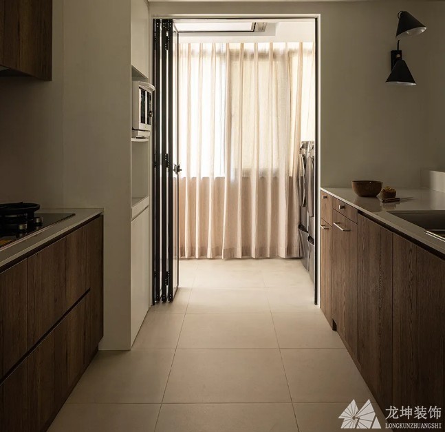 廚房布局最重要的是儲藏、準備、清洗、存儲和烹飪五大區域,合理的規劃應該是從進門開始布局左往右依次是儲藏區、清洗區、準備區、烹飪區,存儲區穿插在清洗區、準備區和烹飪區之間,根據不同區域的操作需求存儲相應的物件。